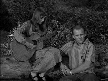 The “Come Wander With Me” song was composed by Jeff Alexander and sung by actress Bonnie Beecher. The song is built into the story. It builds verse by verse together with the events in the episode. Parts of the lyrics are not complete, since some verses are not sung in full. The song has been used in several places since its 1964 broadcast. It was covered by The Gathering’s former vocalist Anneke Van Giersbergen on her solo record Air, released under the moniker of Agua de Annique. It was featured on the soundtrack of Vincent Gallo’s 2003 film The Brown Bunny. It was also used as background music in Belgian director Koen Mortier’s 2006 television commercial “Angels” for Dutch insurance company RVS. The ad shows flying men with open umbrellas inspired by René Magritte’s Golconda. Lacoste also used it in an ad for their fragrance “Love of PInk”. It was also covered by the band British Sea Power for their Man Of Aran soundtrack, and sung by Cedric Bixler-Zavala of The Mars Volta during the Omar Rodriguez-Lopez Group tour in 2011.